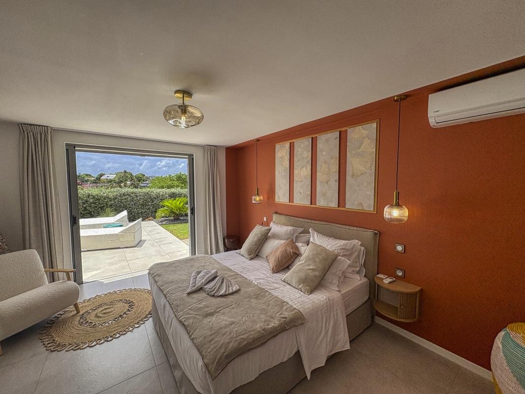 Ce sera votre villa ultime en Guadeloupe, avec 1 lit king size, salle de bain attenante et un grand dressing d'où vous pourrez admirer la vue sur la piscine.